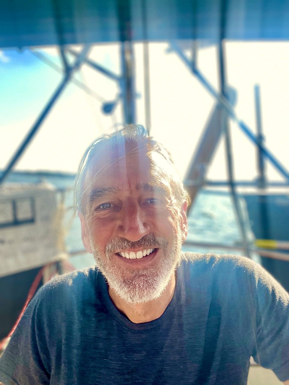 I normally have my iPhone mounted on top of the binnacle as a backup to my chart plotter (really to browse the Web) and after looking through my photos it seems that on every trip I take a selfie. Here’s the latest. (iPhone 12 Pro Max)